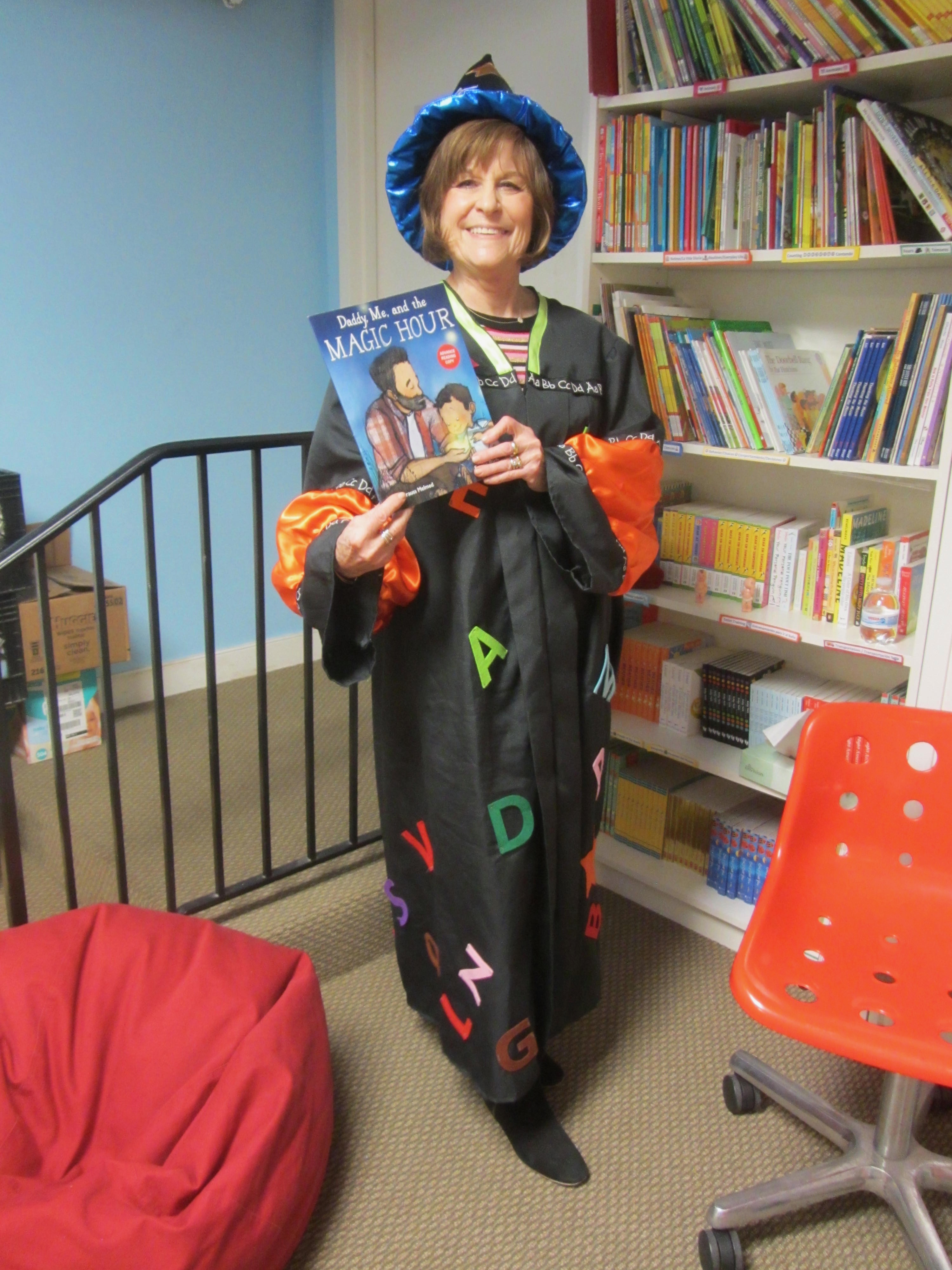 An Open Book Foundation made my visit possible and gave every child a book to keep. The center asked me to wear their alphabet cap and gown as an honored guest!