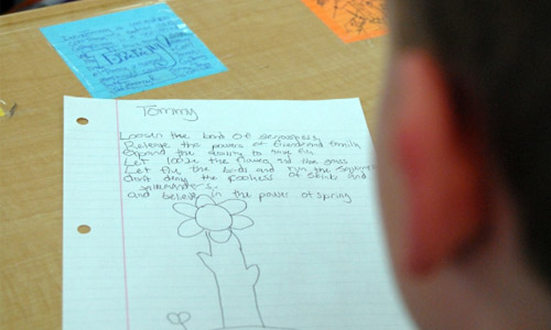 This third grade shared poem was written by the children in my workshop, “Poems with Wings,” which focuses on finding fresh, rich ways of using language to create poetry that rises to new heights!