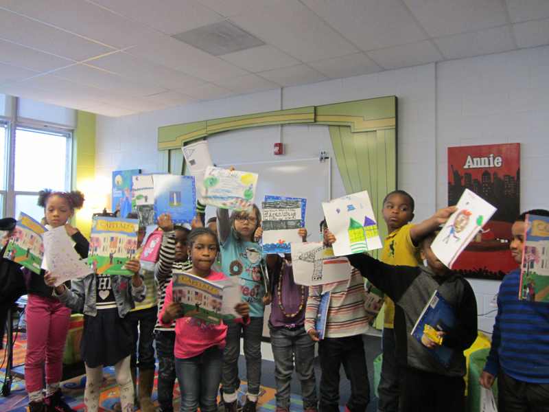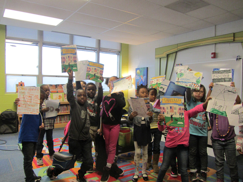 My second visit to a DC area elementary school with the wonderful Open Book foundation was at Leckie elementary school in Southeast Washington. An Open Book always donates a full collection of the books by their visiting authors or illustrators to the school library. In addition, each child gets a book to keep.